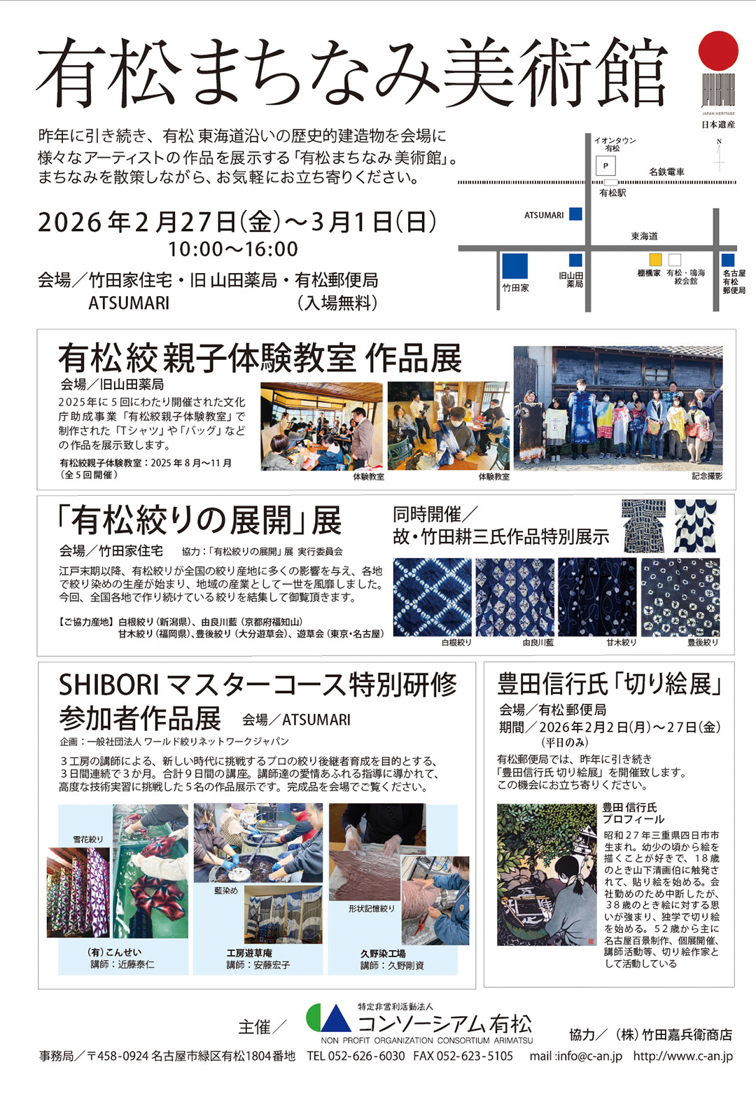 お問い合わせ【TEL】0565-62-0010駐車場有り(4台)公共交通機関でのアクセス方法名鉄豊田線「豊田市」駅 または 愛知環状鉄道「新豊田」駅より名鉄バス足助行きに乗り換え、「香嵐渓」バス停下車。徒歩約10分https://kuranonakagallery.com/archives/category/exhibition/2026