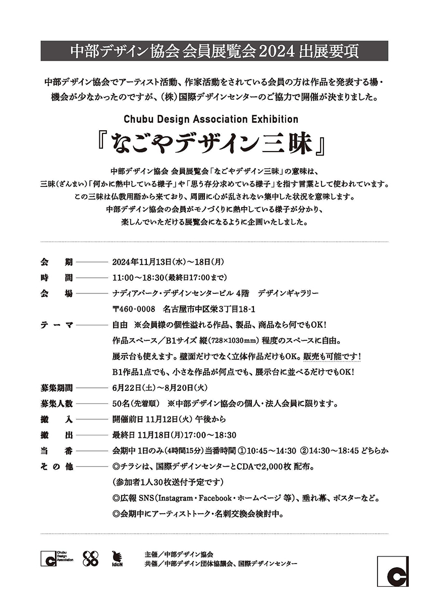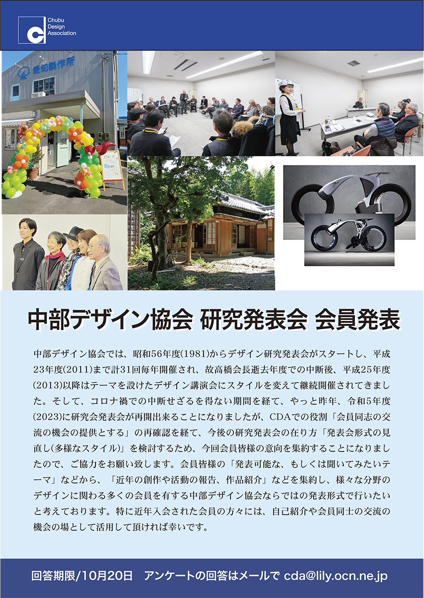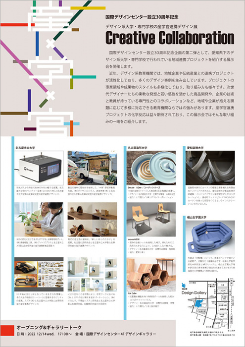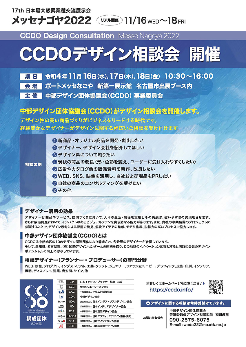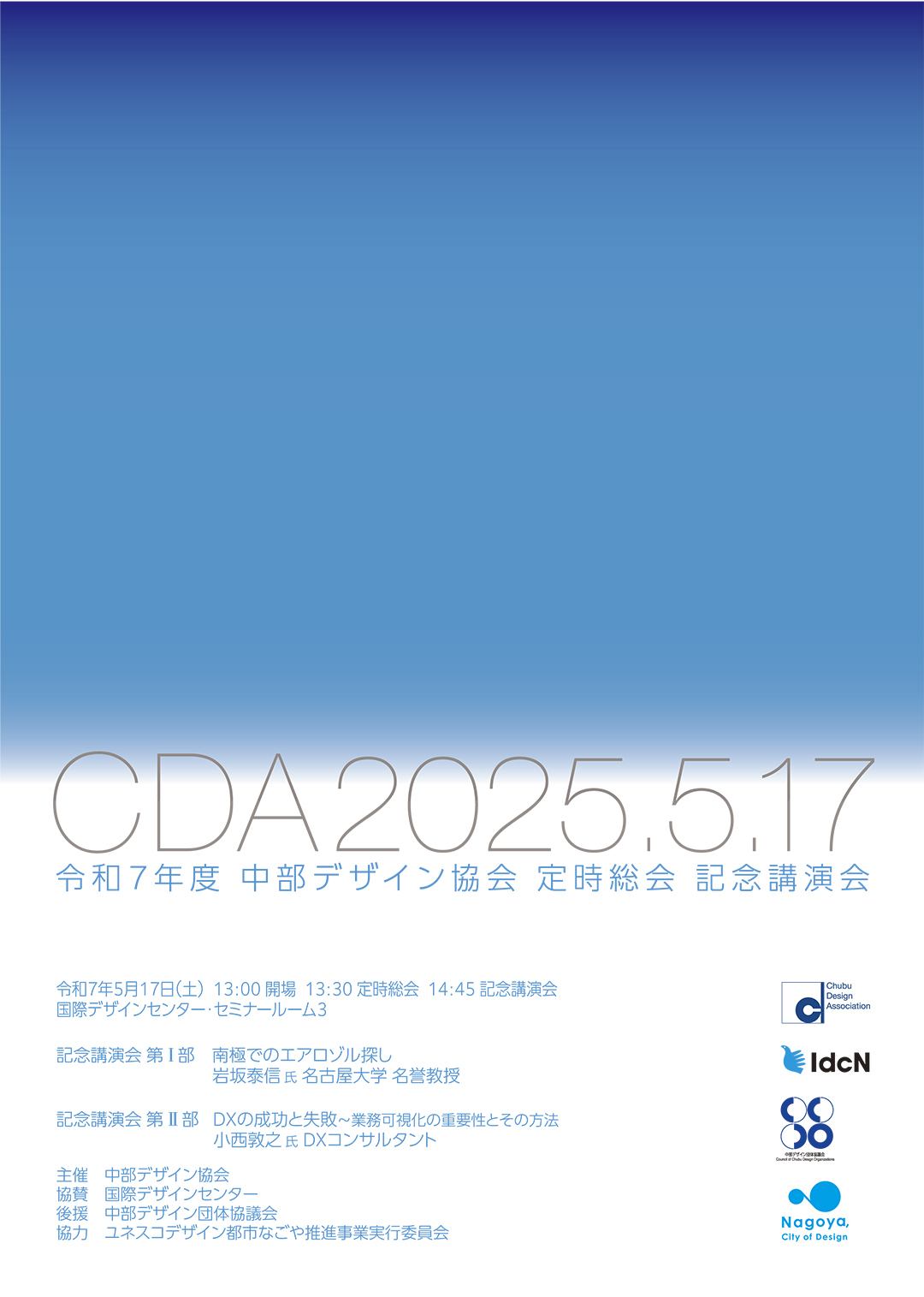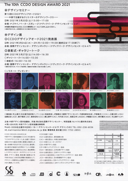 主催/中部デザイン協会 中部デザイン団体協議会協賛/(公財)名古屋産業振興公社 国際デザインセンター協力/ユネスコデザイン都市なごや推進事業実行委員会