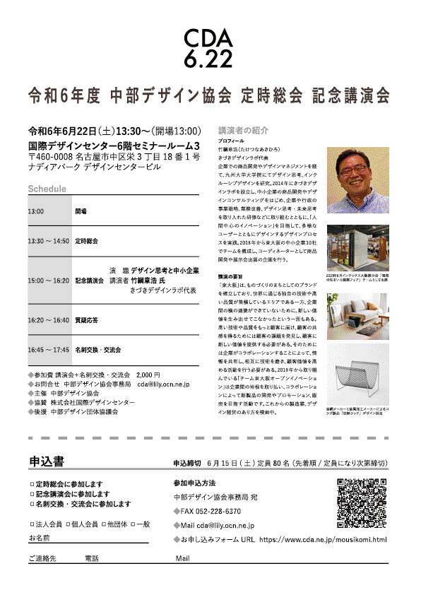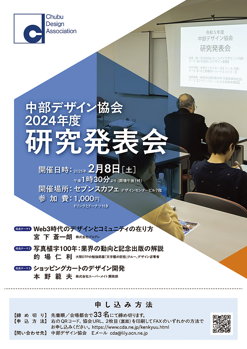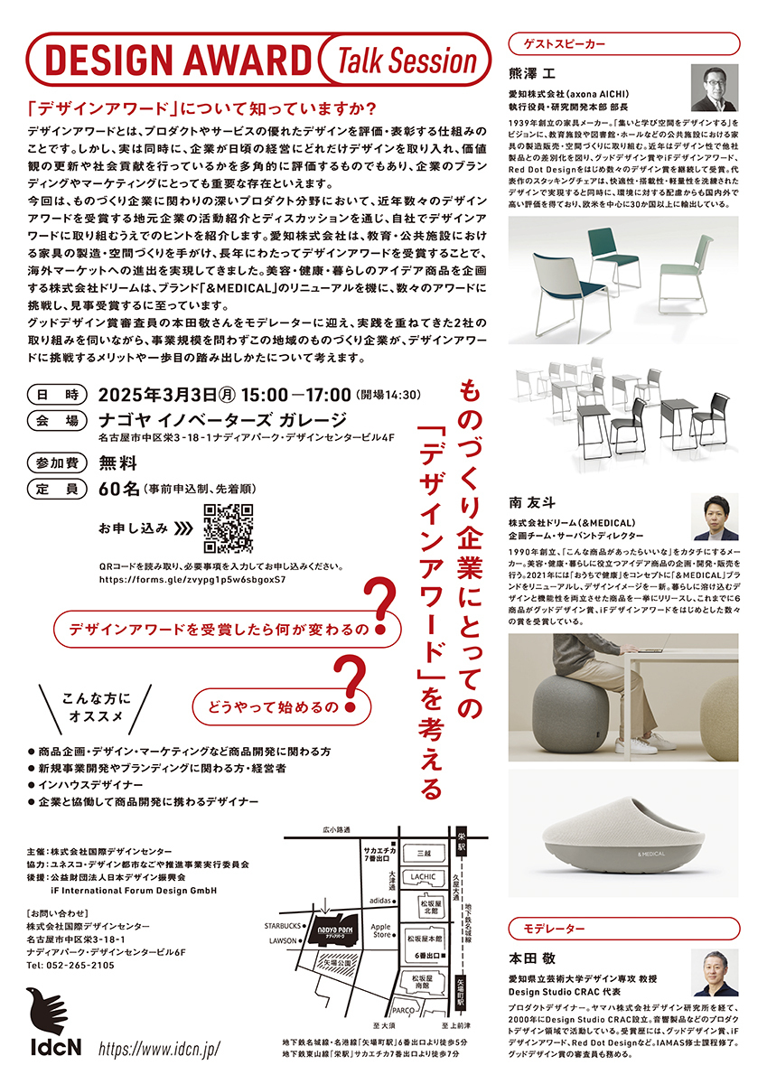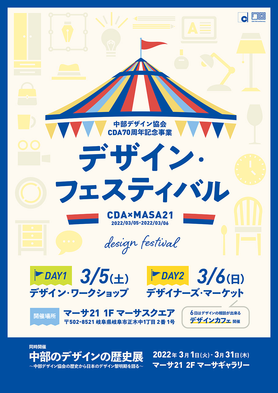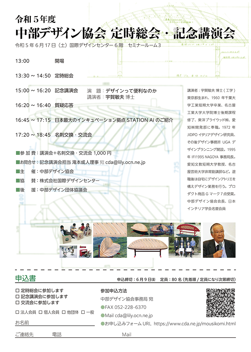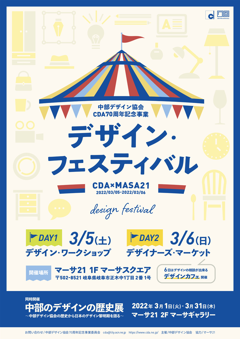 主催/中部デザイン協会 中部デザイン団体協議会協賛/(公財)名古屋産業振興公社 国際デザインセンター協力/ユネスコデザイン都市なごや推進事業実行委員会