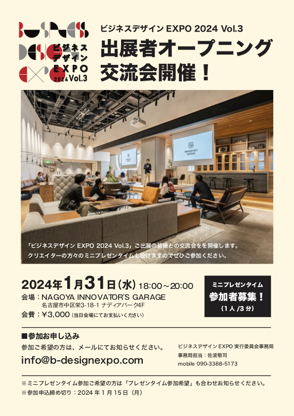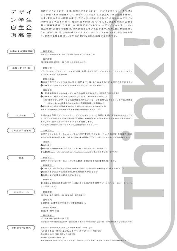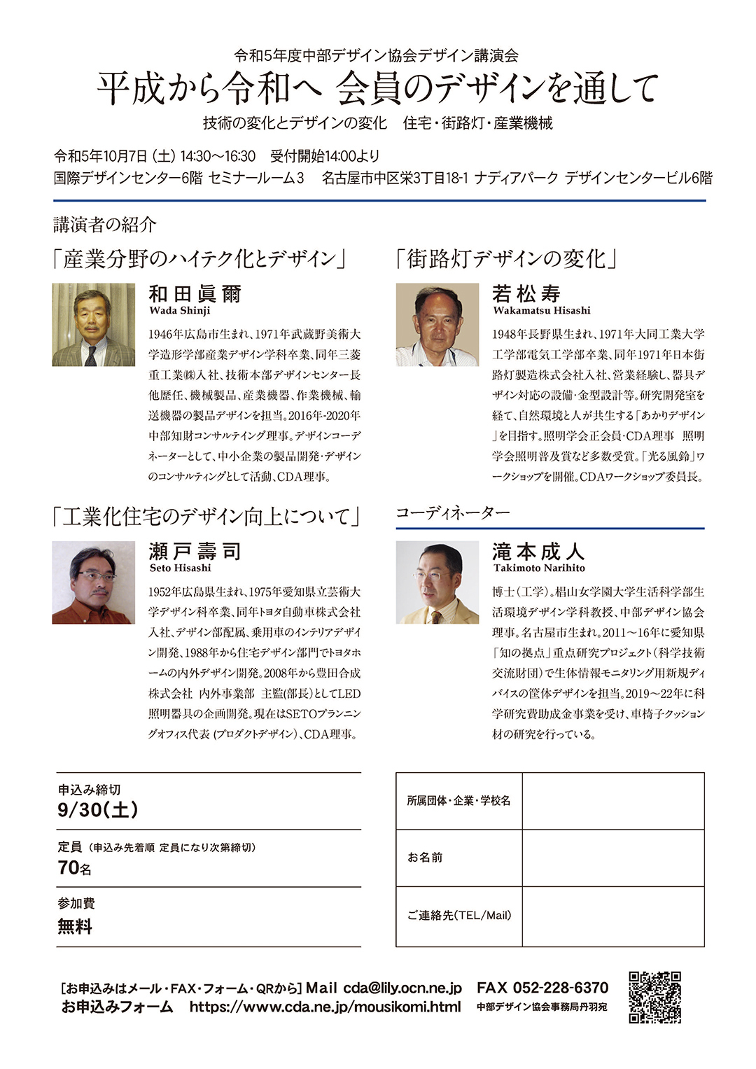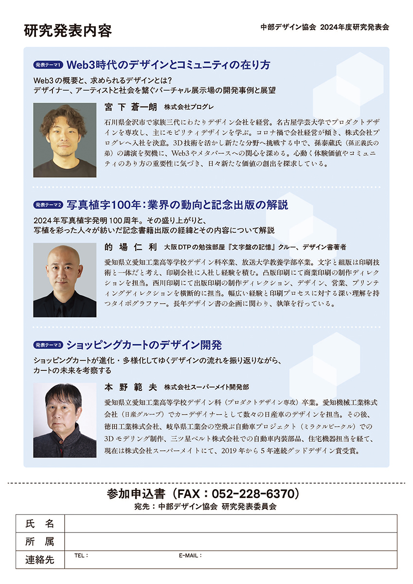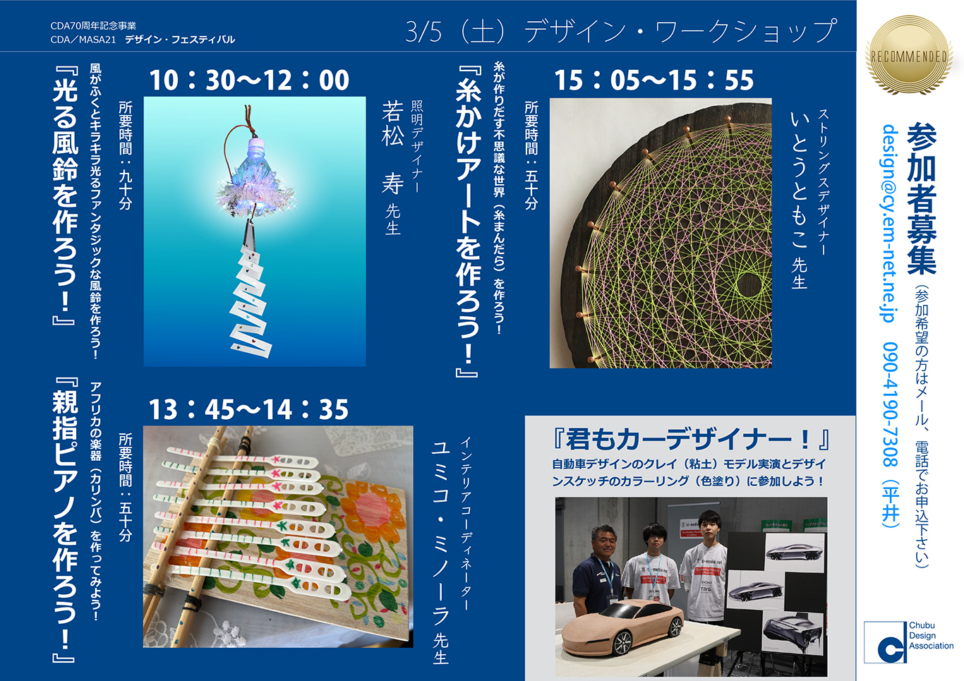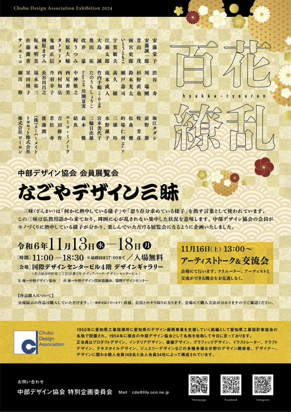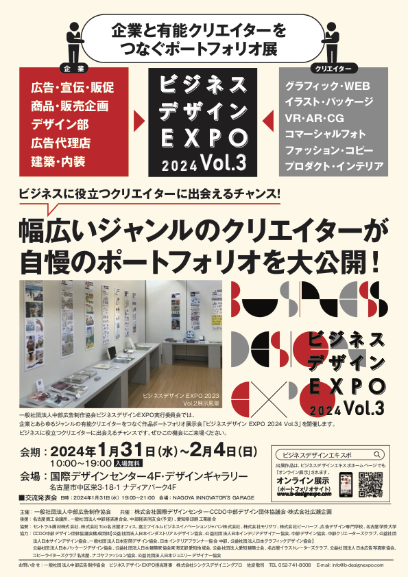 主催/中部デザイン協会 中部デザイン団体協議会協賛/(公財)名古屋産業振興公社 国際デザインセンター協力/ユネスコデザイン都市なごや推進事業実行委員会