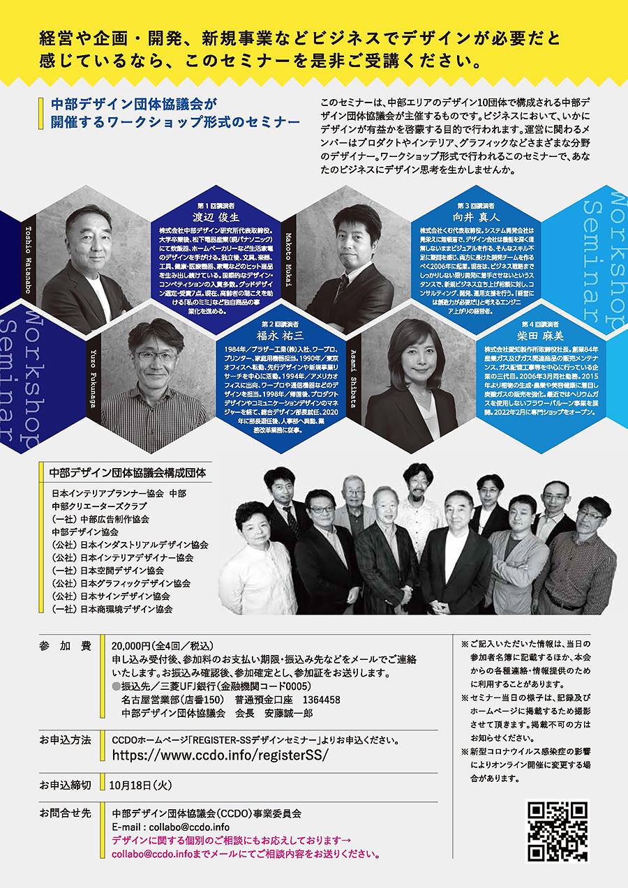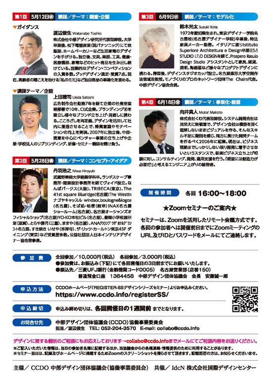 中部デザイン団体協議会(CCDO)が主催します「デザインシリーズセミナー」を本年も下記要領にて、開催する運びとなりました。