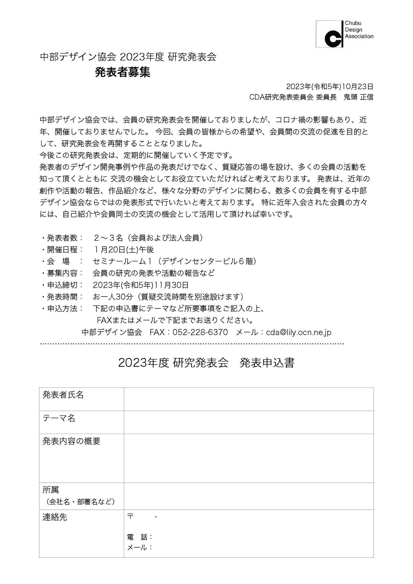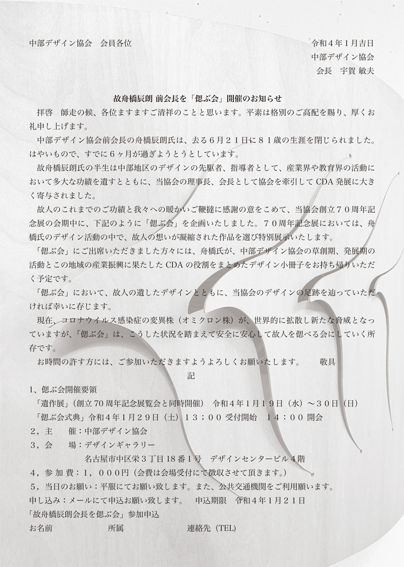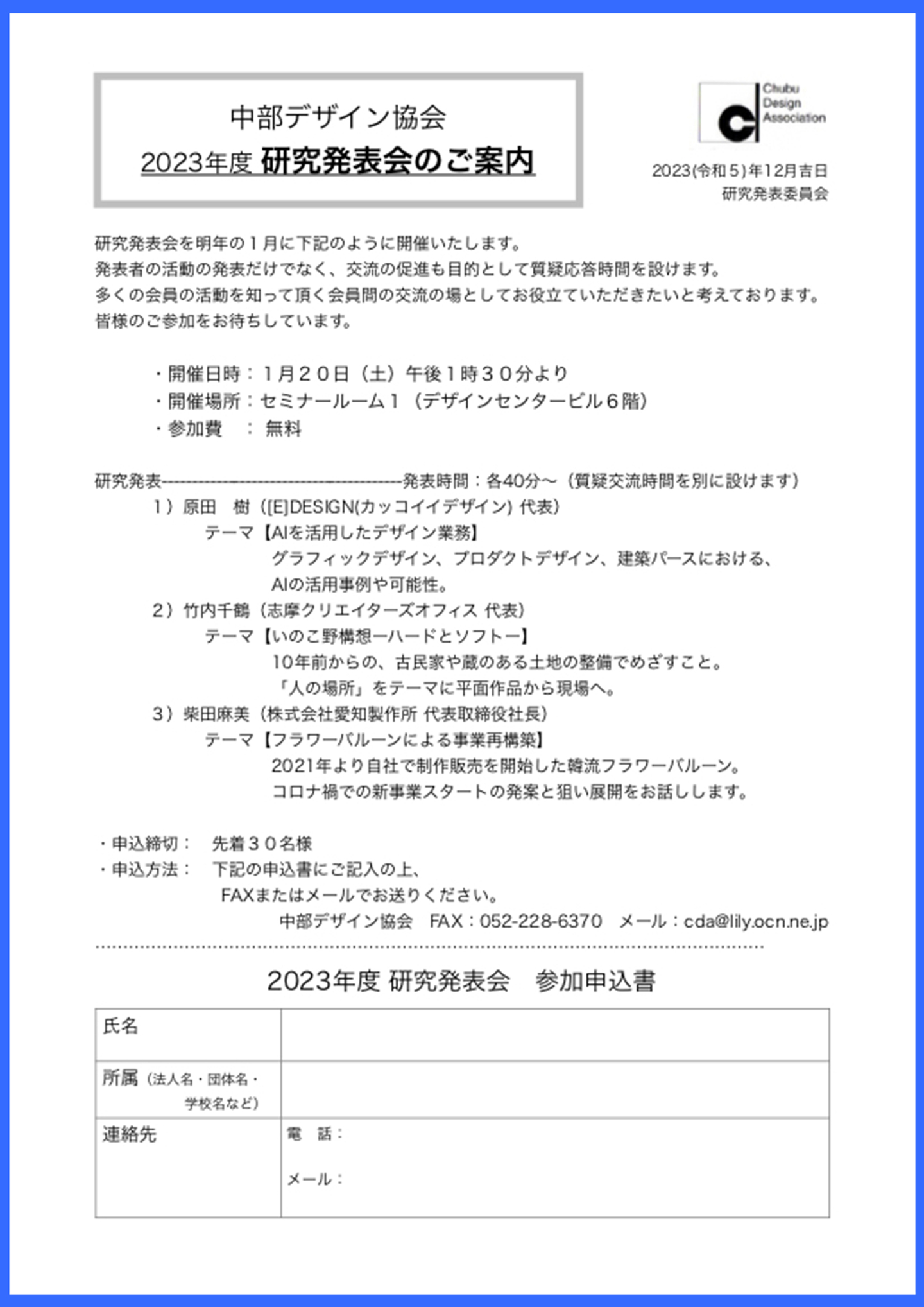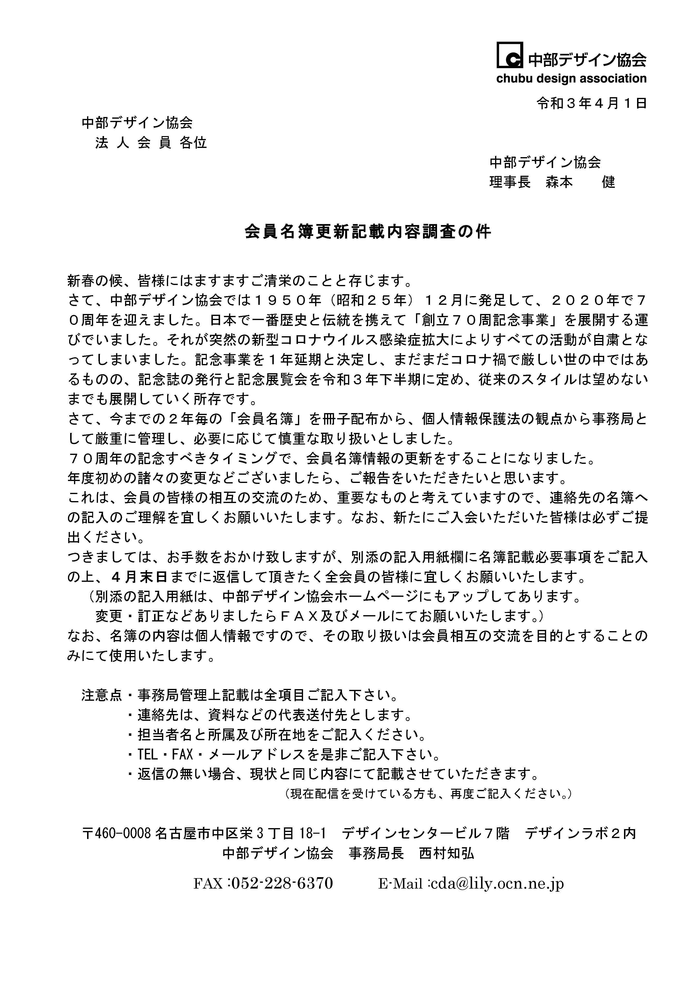 「中部デザイン協会会員名簿記入用紙」を4月の郵便で送らせていただきました。