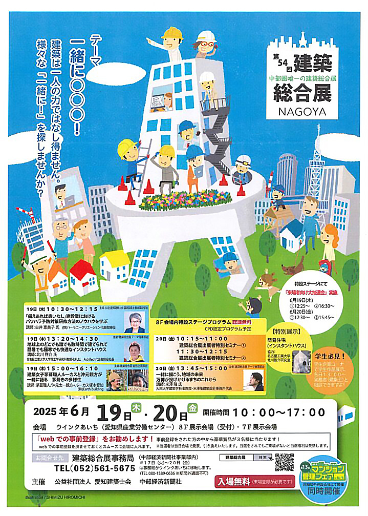 公益社団法人・愛知建築士会と中部経済新聞社は「第54回建築総合展NAGOYA」を、2025年6月19日(木)、20日(金)の2日間、ウインクあいち(愛知県産業労働センター)にて開催いたします。