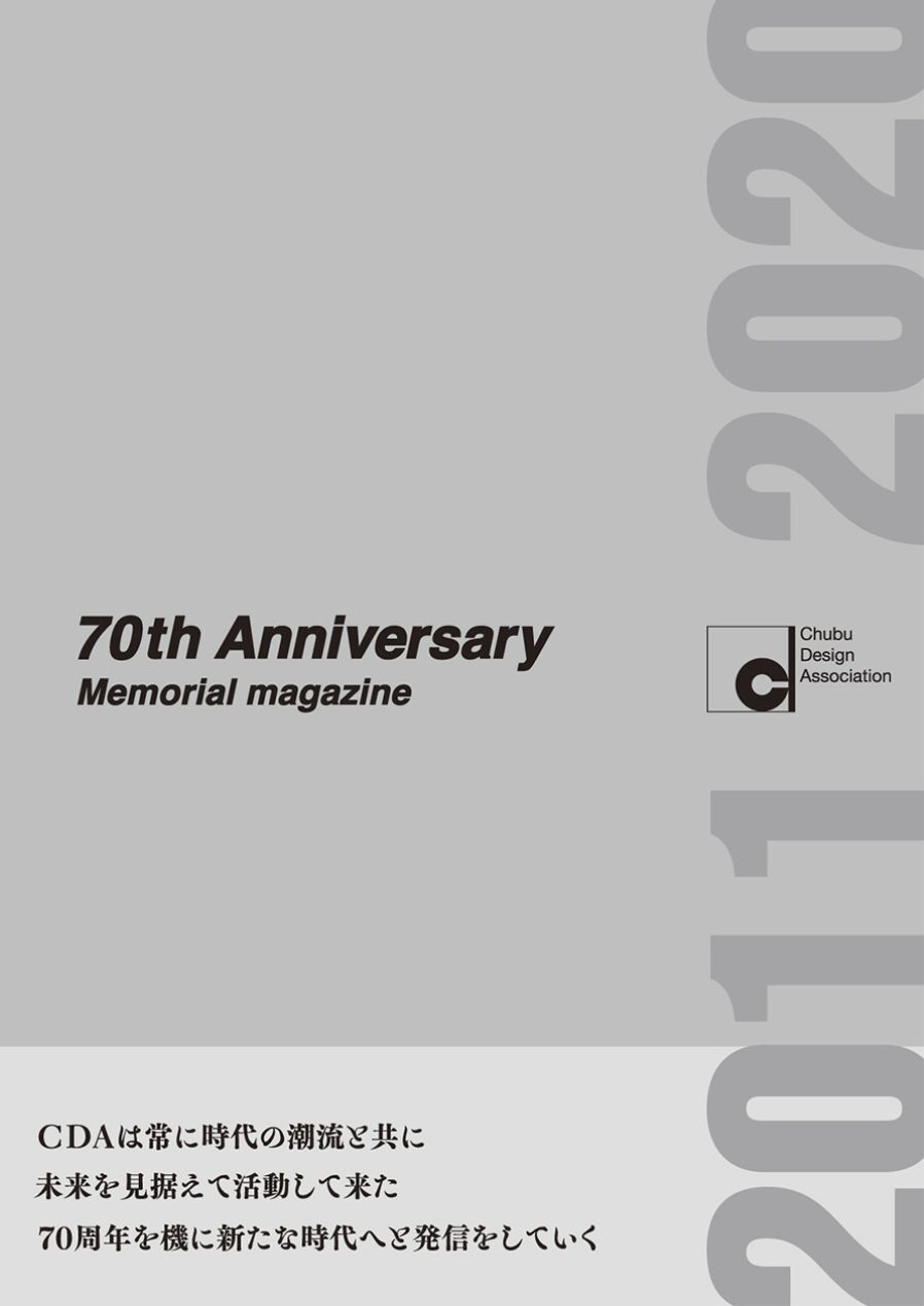 中部デザイン協会70周年記念誌が発行されました。デザインは梶原大輔様が制作してくださいました。10年間の協会の活動・会員の活動を詳しく掲載させていただいております。記念誌をご希望の方は1冊1,000円で送らせていただいておりますので事務局までご連絡ください。(在庫がない場合もございますのでご了承下さい)